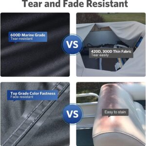 - 600D Marine Grade Material – This boat cover is made of marine-grade 600D oxford fabric with PU coating, In rainy days, you can easily shake off the water droplets, Hard Top boat Cover is not easy to fade and tear. And such material is easier to clean, so you don't have to worry about tree sap and dirt settling in to stay.